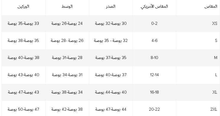 - كذلك شاهدي دليل قياسات الملابس السفلية بوحدة البوصة: