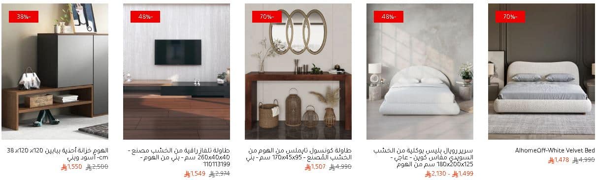 و كذلك غيرهم من قطع الاثاث التى لا غنى عنها، كل هذا بأسعار لا مثيل لها، حيث أن نسبة الخصومات على المنتجات المختارة لك بالعروض تتراوح ما بين 20% حتى 80%، لذا جدد لمتك مع عائلتك فى الشهر المبارك و أبدأ فى التسوق من العروض الآن.